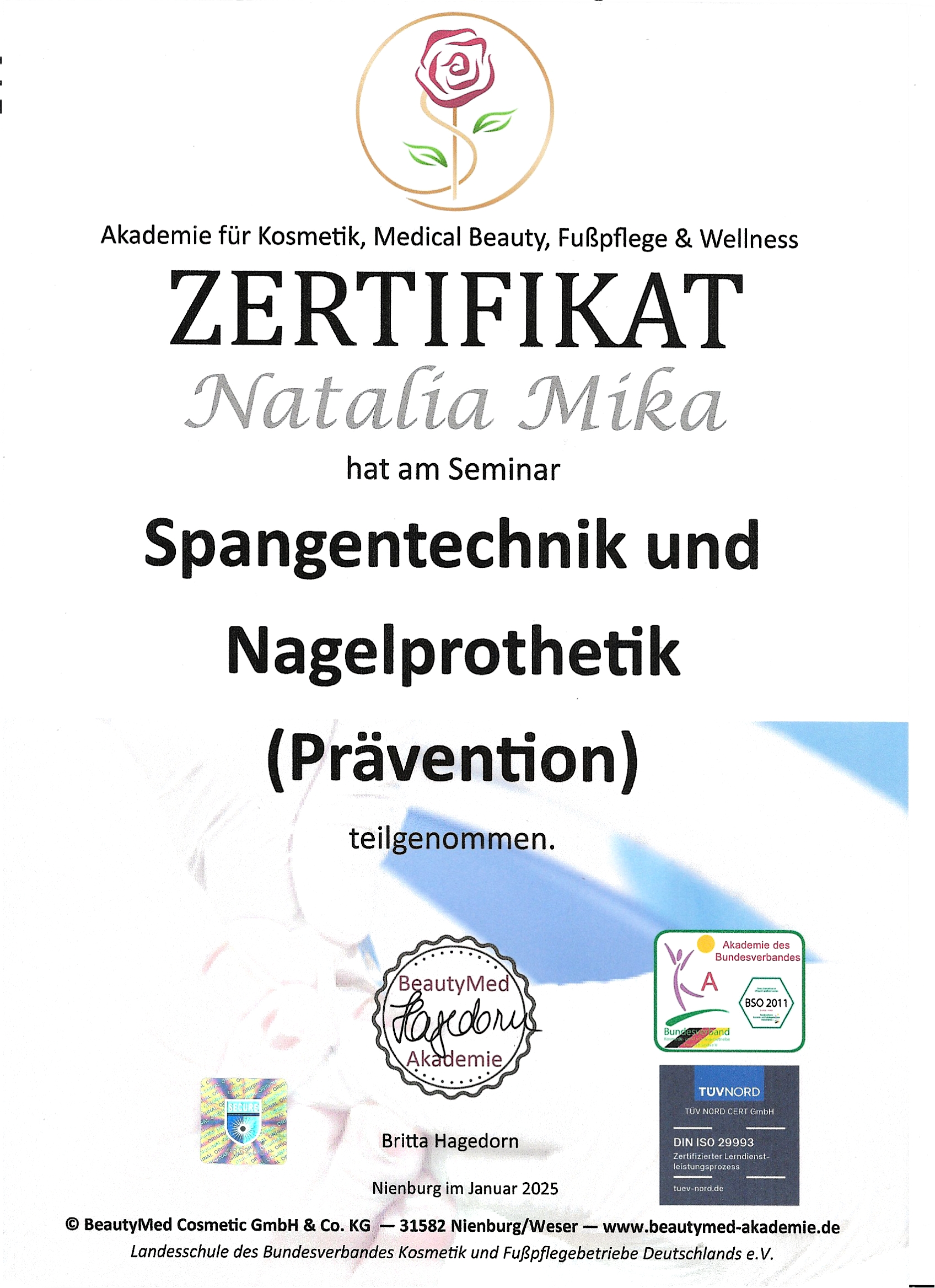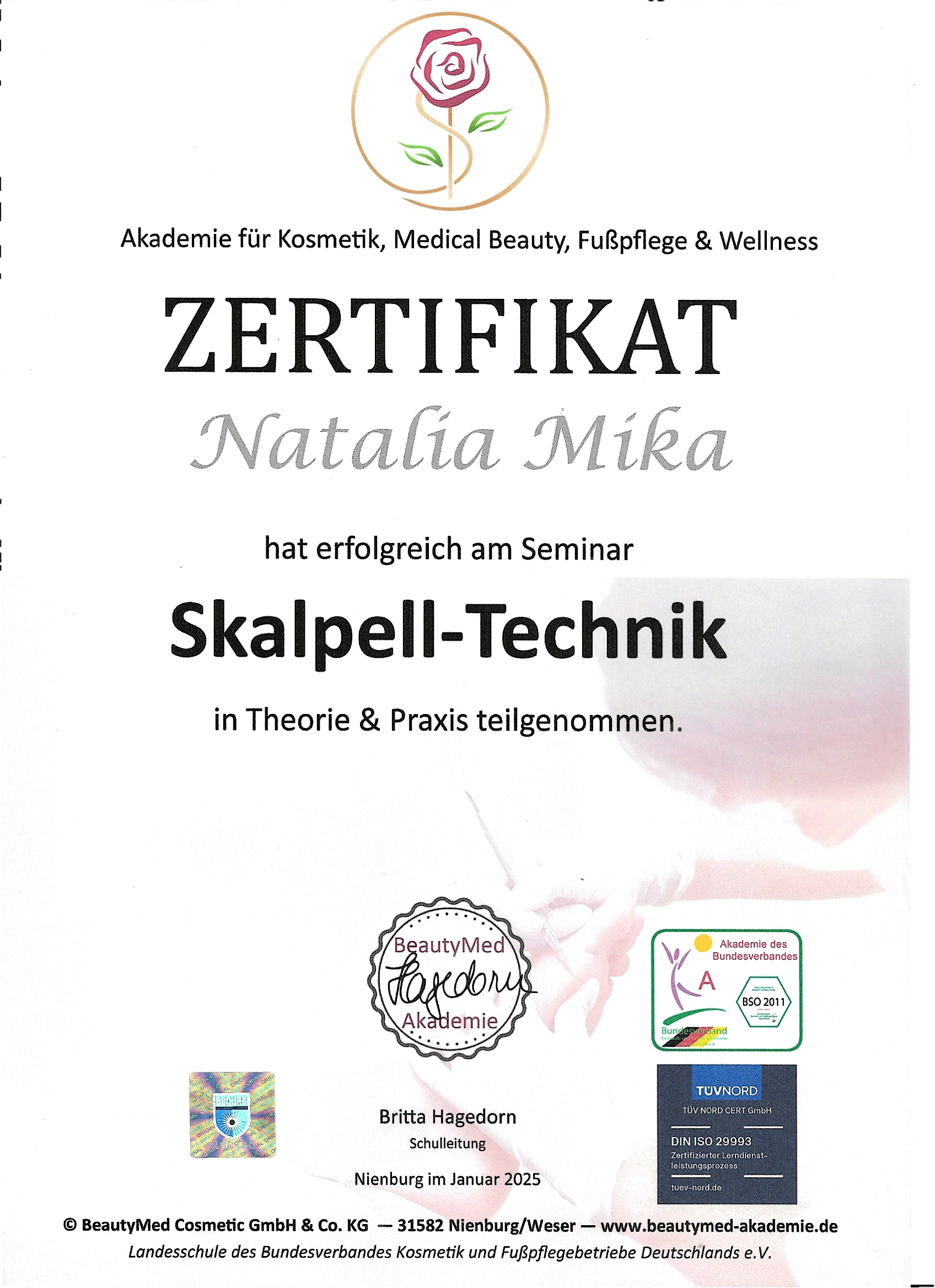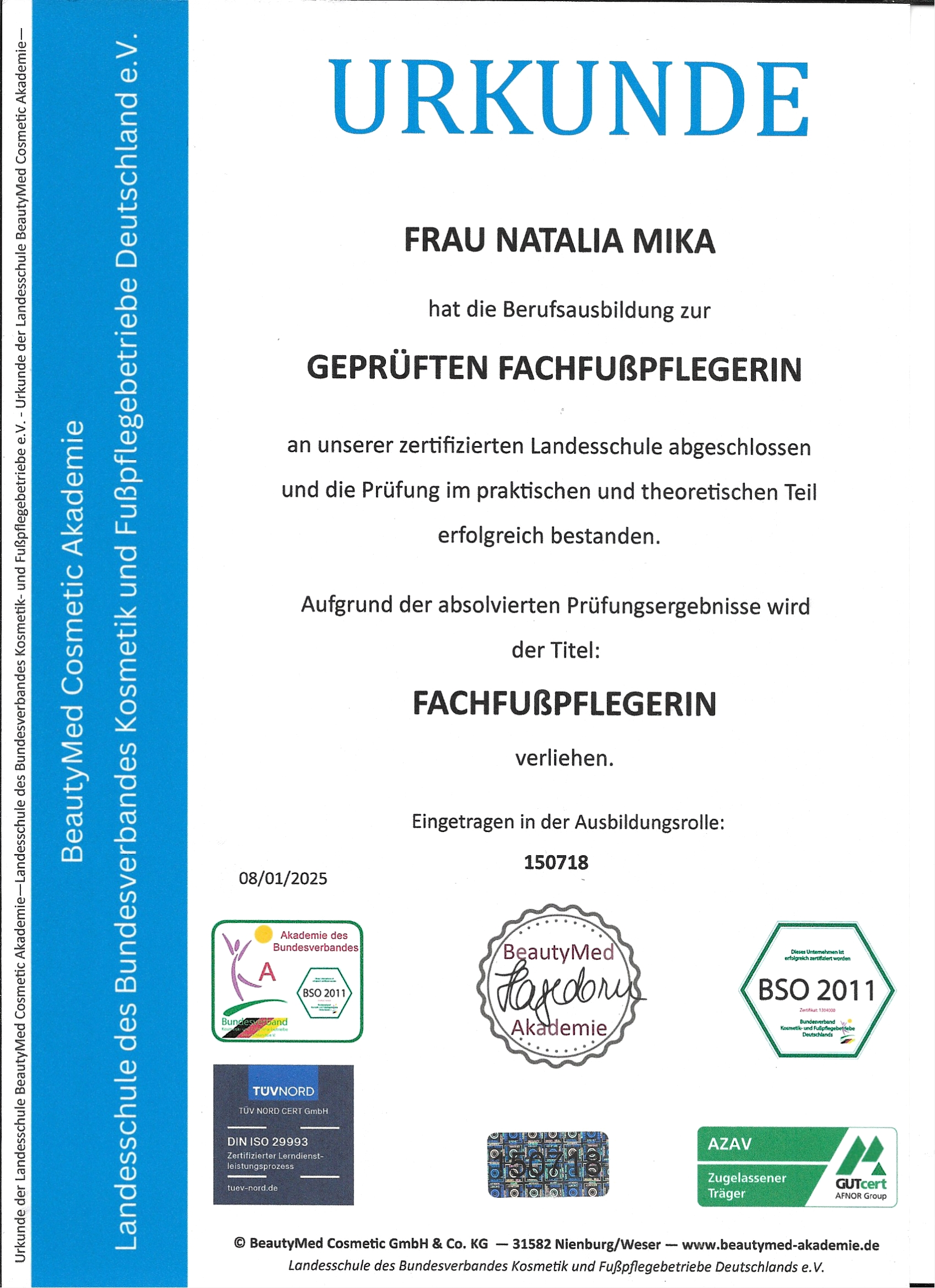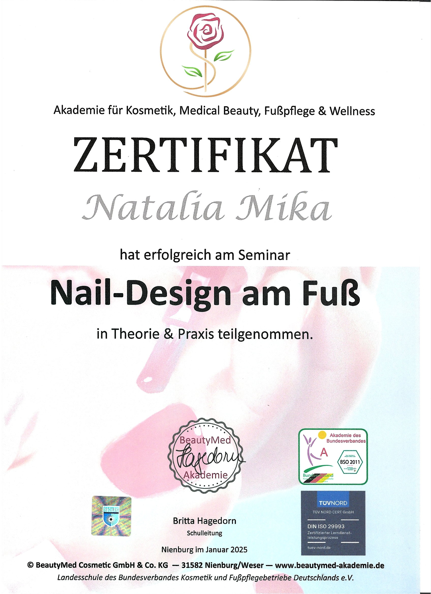 Meine Ausbildung habe ich in der Akademie für Kosmetik, Medical Beauty, Fußpflege & Wellness in Nienburg absolviert.